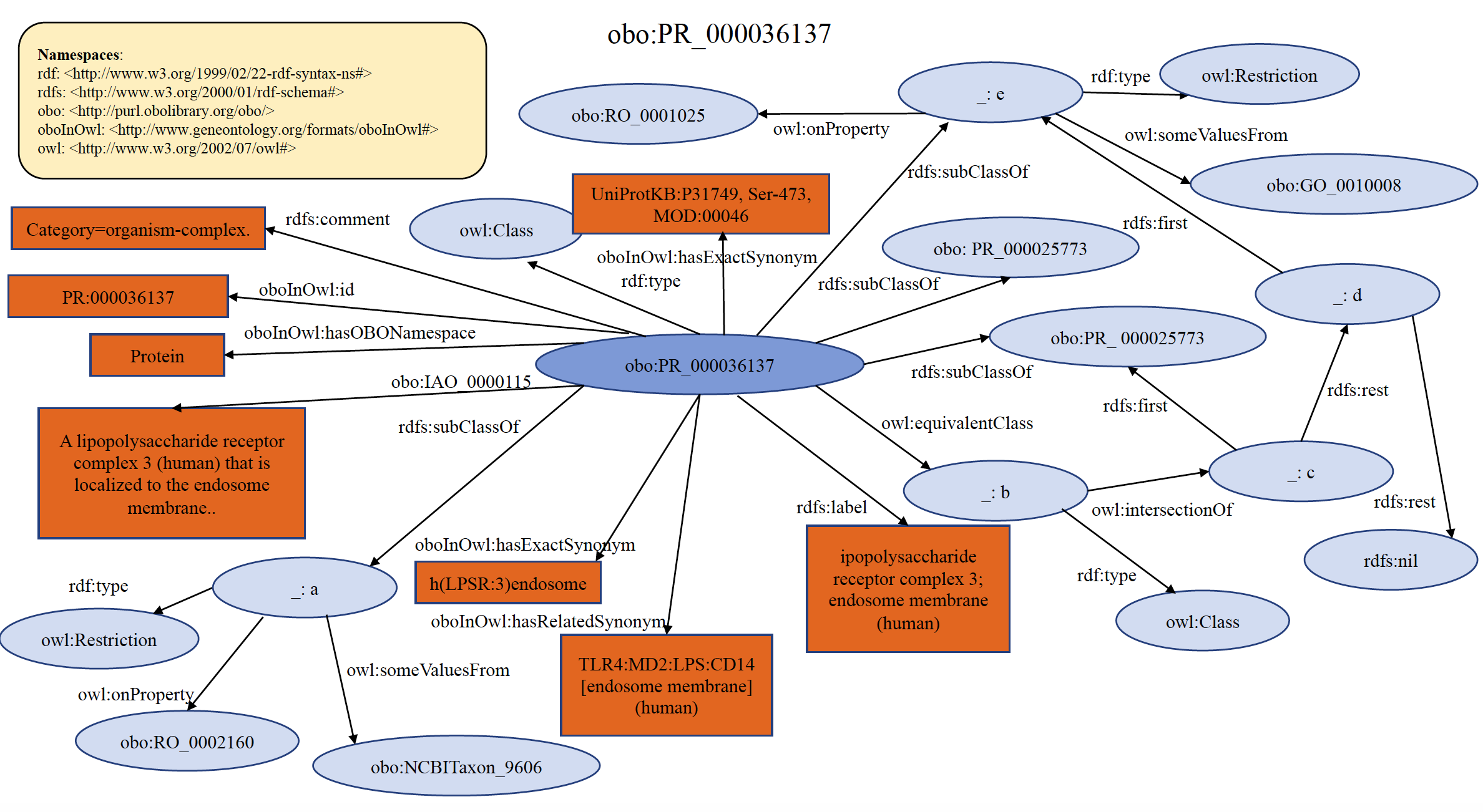 An example of organism specific PRO complex term PR:000036137 is shown below in RDF Graph, RDF/XML and Turtle formats.